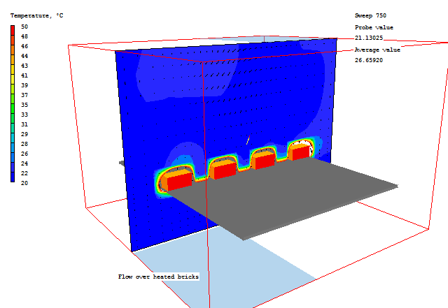 Note that the top value on the temperature scale has been reduced to emphasise the thermal plume rising from the right-hand brick.