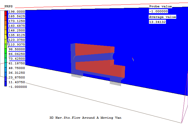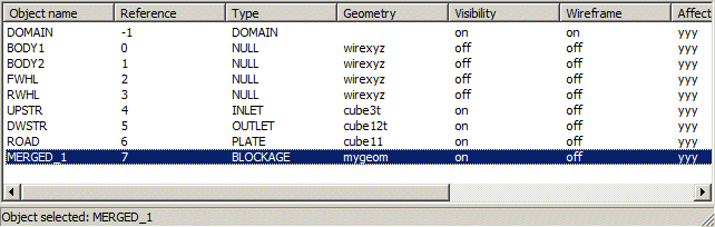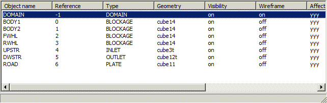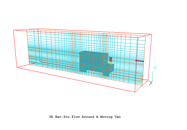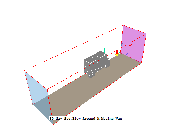 The case concerns flow around a simple representation of a van - half a van really as the X=0 plane is a symmetry boundary. The body of the van is made up of four separate blockages, as can be seen from the Object Management Dialog (click