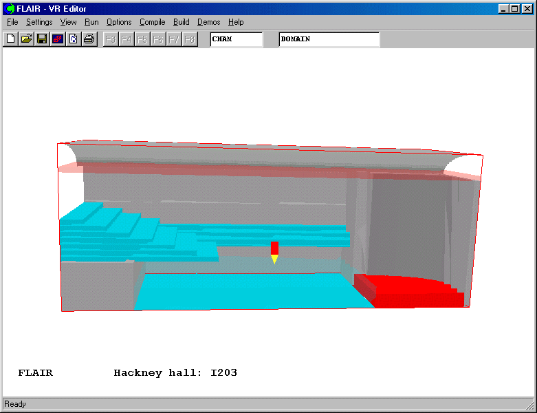 - The geometry within the domain was created using PHOENICS-VR. As the auditorium was very nearly symmetrical, only half of the domain was modelled.