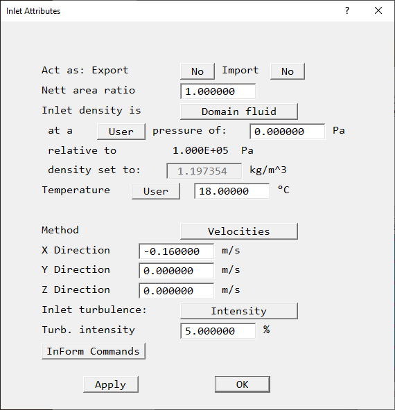 - The air supply under the balcony, on the long side of the theatre, is introduced at 12degC. The incoming air velocity, from this long, slot is fixed at 3m/s, giving a mass flow rate of about 2.5m3/s.