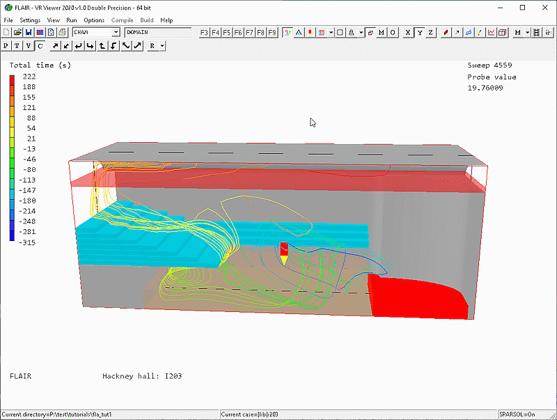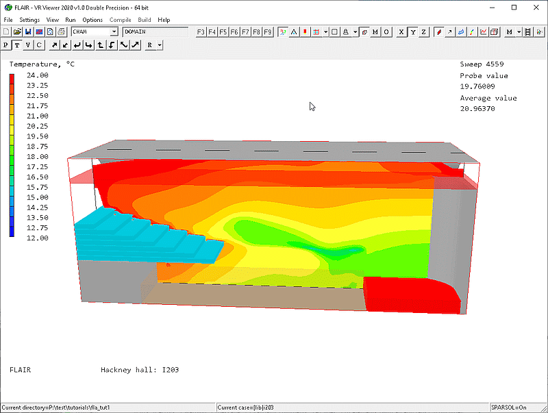 This tutorial is to illustrate how to load case I203, Ventilation of Hackney Hall from the FLAIR library and investigate its settings, run the case and view the results. However, this is a 3D real application and the user does not have to run through the case as it may take a few hours to complete.