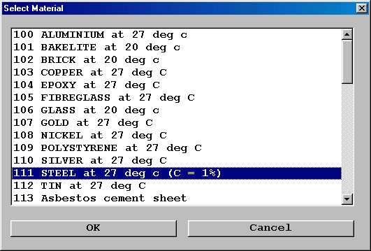 - Highlight '111 STEEL at 27 deg C' and click on 'OK. This will bring up the following
