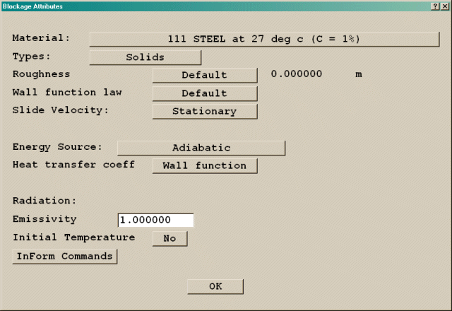 - Click on 'General' button and 'Attributes', and leave the default setting 'Adiabatic'