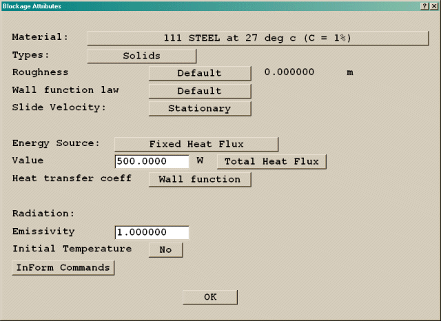 - Click on 'General' button and 'Attributes' button and select 'Surface temperature' for 'Energy source'