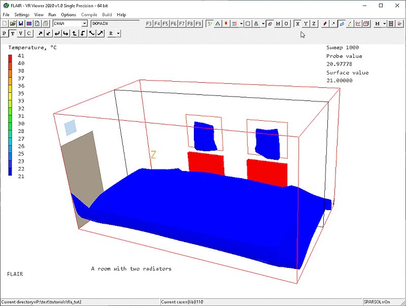 will appear on the screen which shows the iso-surface contours at the temperature of 21°C.