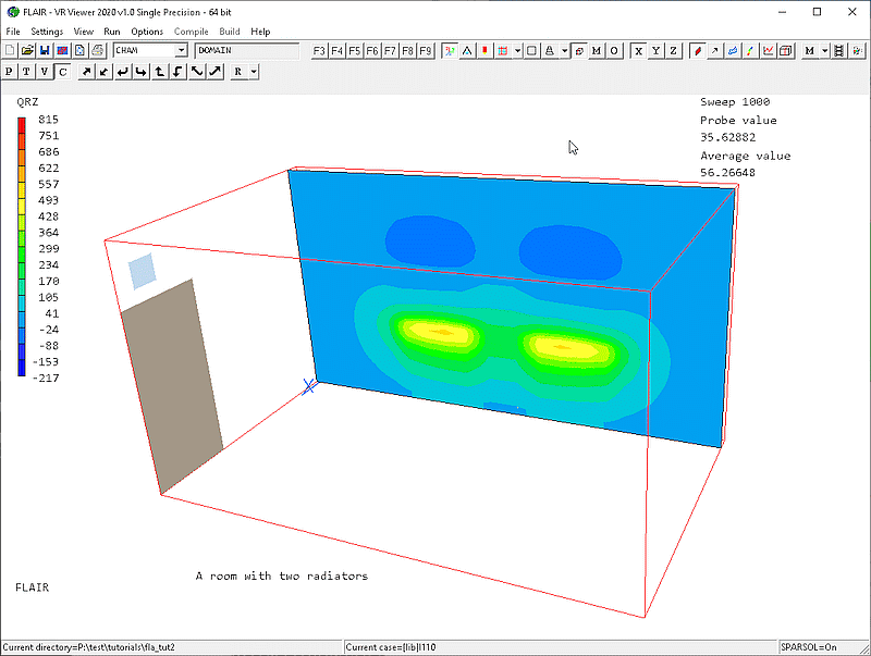 - Move the probe to X-position=0.17m and click on 'Contour toggle' to display the QRX