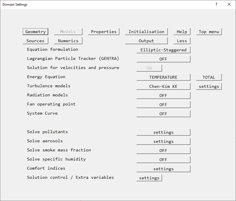 - Click on the 'Turbulence models' button to bring up a list of available turbulence