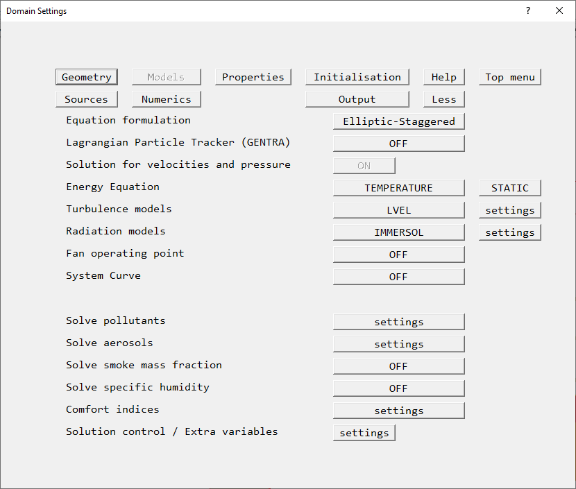 - Click on the 'Turbulence models' button to bring up a list of available turbulence