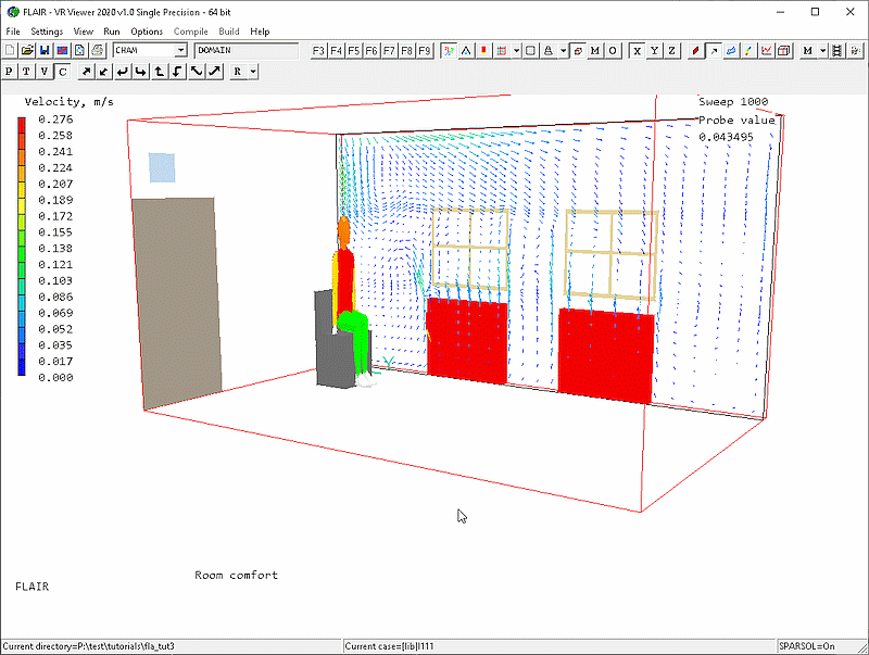 - Click on the 'Run' button, then on 'Post processor', then 'GUI Post processor (VR