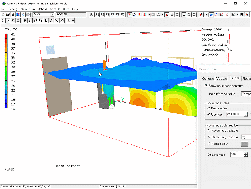 - Click on 'iso-surface toggle' to clear the iso-surface of the temperature contour