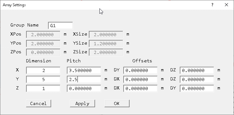 - Set dimension and pitch values as shown below