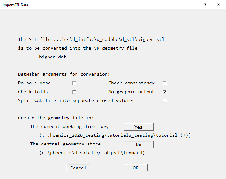 - Click on 'OK' to convert the import STL file to the VR data file, bigben.dat