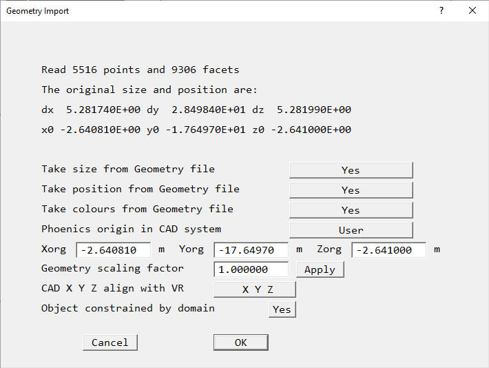 - Clicking 'OK' will bring up the 'Geometry Import' dialog box as shown below