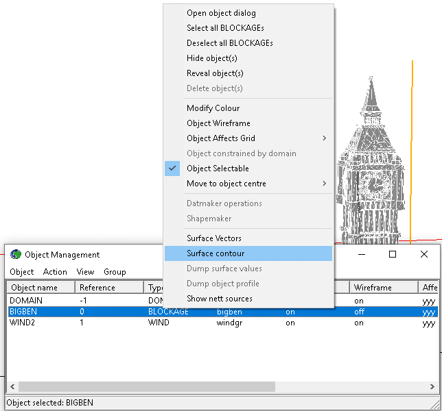 - Right-click the BIGBEN object in the list, then select 'Surface contour' from the context menu, as show below