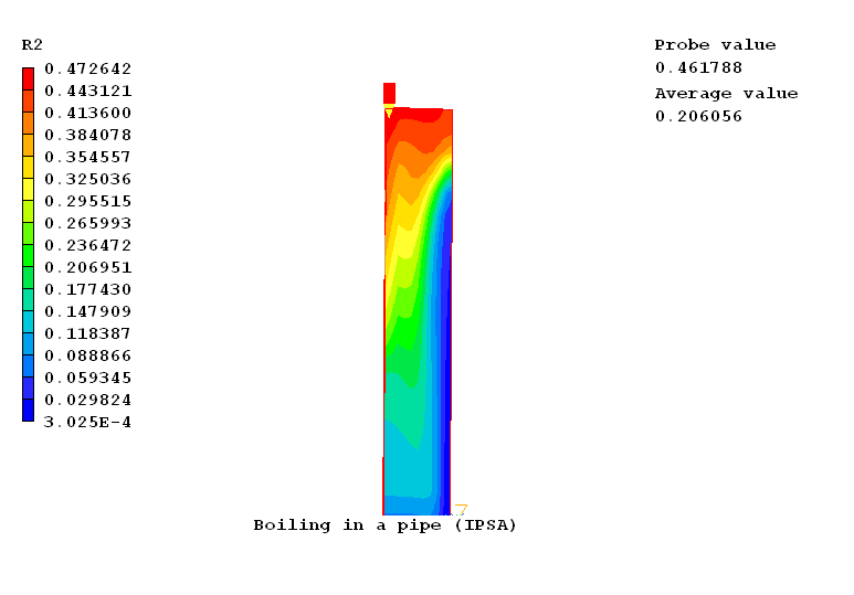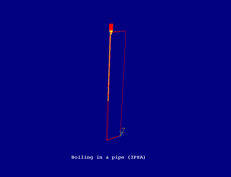The case below exemplifies how the IPSA method built in PHOENICS for two-phase calculations can be applied to steady boiling in pipe. The cylindrical-polar coordinate system is used and the flow is laminar. The heat source is supplied along a part of the pipe wall.