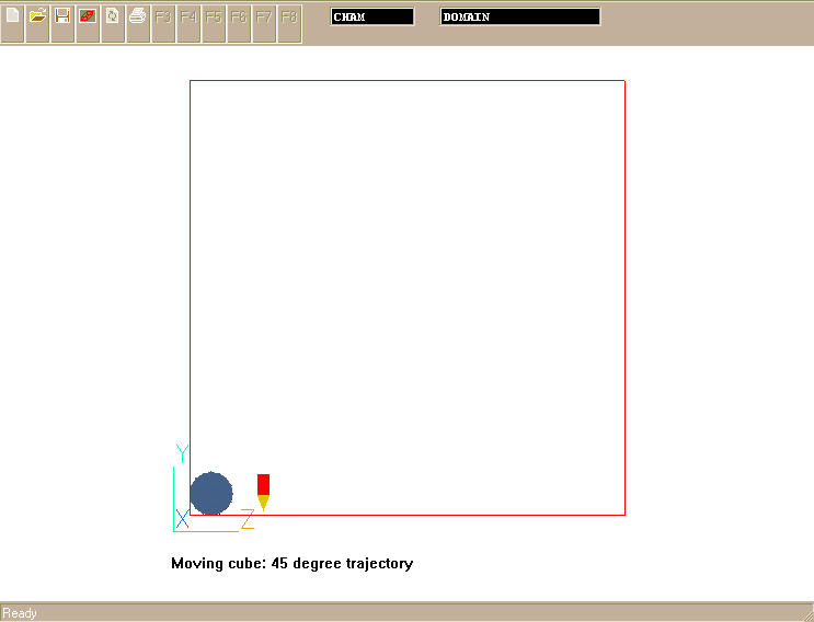 The task is to define a motion of a 2D, Y-Z, circular object called "CYLINDER" following a prescribed linear trajectory of 45 degree climbing. The velocity of the object is, therefore, uniform and the components in Y- and Z-direction are given as 4 m/s. The object starts from a stationary position at the low-south corner of computational domain.