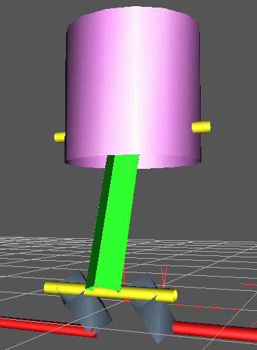 The ROD rotates about the same axis and has no freedom to move relatively to SHAFT. That is why the RODs definition section is completely omitted here. The OFFSETs of both PADDLEs are also zero: both rotates about the same origin, but their CHANNELs should indicate that it is Y-axis they rotate about.