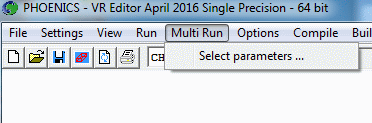 To start the parameterisation process, click 'Multi-run' on the Menu Bar, then 'Select Parameters' as shown below.