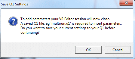 The base Q1, multi-run.q1 and the parameter file multi-run.param are already in 'Save as case' format. To use them again, in VR-Editor click 'Multi Run', then when the 'Multirun Parameter Settings' dialog opens, browse to 'multi-run.q1'. The parameter file will be opened automatically as it follows the naming convention.