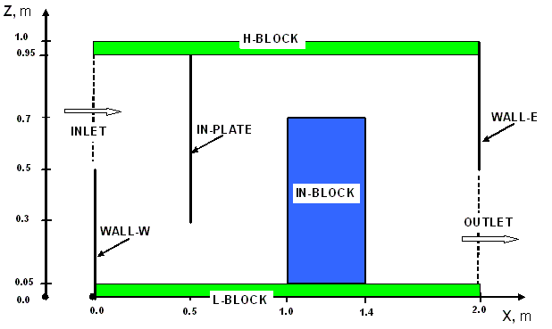The geometry was as shown in the figure below, but with the vertical dimension 1m and the horizontal dimension 2m :