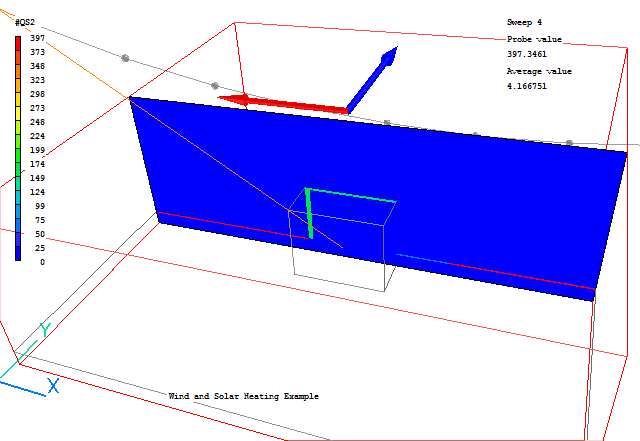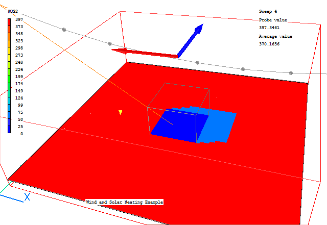 The solar heat load can be checked by plotting contours of #QS2 (ensure that the ground plane is hidden or only showing its wire-frame):
