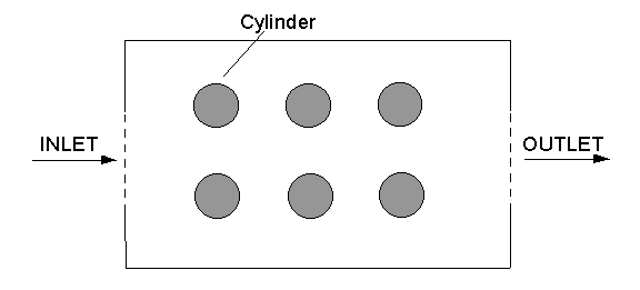 This workshop example shows how to use the Object Arraying facility of the VR Editor. The flow is two-dimensional and its geometry is shown in the figure below. The shaded circles represent cylinders. Velocity and pressure will be solved.