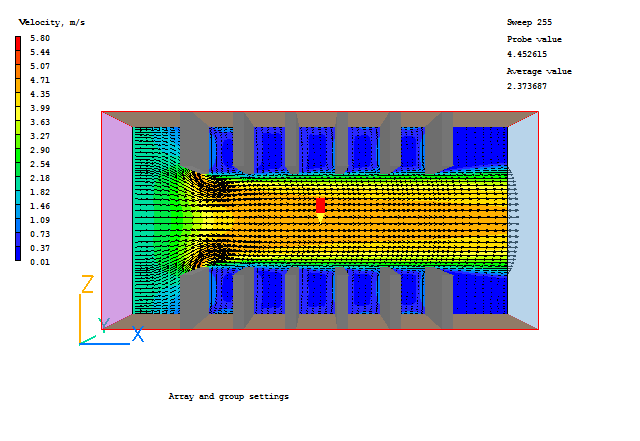 This workshop demonstrates how to set up a geometry with the Array and Group facility of the VR Editor, and to run the simulation. The flow is two-dimensional and its geometry is shown in the figure below.