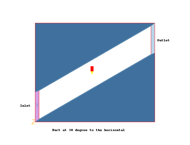 The flow to be set up is a two-dimensional duct at 30° to the horizontal with frictionless walls.
